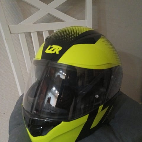 Svart hjälm med helt visir. Storlek S (55 cm).
