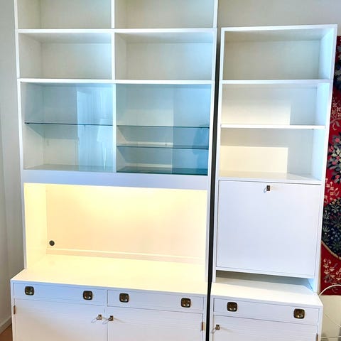 Mycket välvårdad 60 tals bokhylla med barskåp i massivt trä