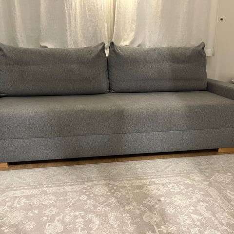 Bäddsoffa i grå färg.
