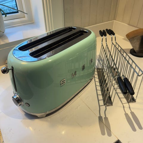 Det italienska märket Smeg är kända för sina hushållsvaror som kombinerar retrodesign med modern teknik. Brödrosten passar in både i 1950-tals inredning och som en kontrast till modern design.