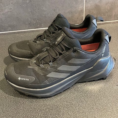 Haglöfs svarta Trail Fuse Goretex vandringsskor. Det står på etiketten att de är i storlek 42 och 2/3 men upplevdes som något mindre i storleken (runt 42). Skorna är designade för vandring och erbjuder funktionalitet och komfort för utomhusaktiviteter. Välomhändertagna och användes bara ett fåtal gånger.