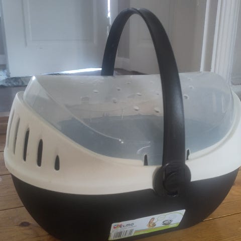 Mycket fint transportbur för små valpar,katter och andra husdjur. Öppnas från olika hål, bekvämt och luftigt. Har använt få gånger. Ny pris 900kr .