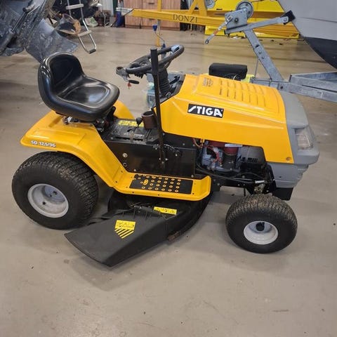 Stiga Villa 14 HST är en åkgräsklippare med hydrostatisk transmission (HST). Den är utformad för effektiv gräsklippning och har en robust konstruktion med en gul och grå färg. Maskinen har pedaler för enkel kontroll och är lämplig för trädgårdsarbete och gräsmatteskötsel. Köre och funderar som den musta, men musta ha en tvätt sen bara köra. Snabb och smidig affär tack.