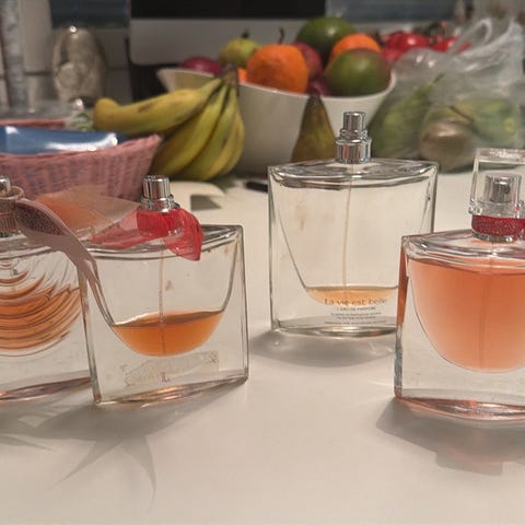 Yves Saint Laurent YSL parfymflaska i svart färg. Produkten är en parfymflaska med sprayfunktion. Material och storlek är inte specificerade.