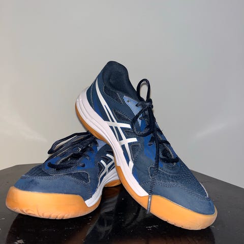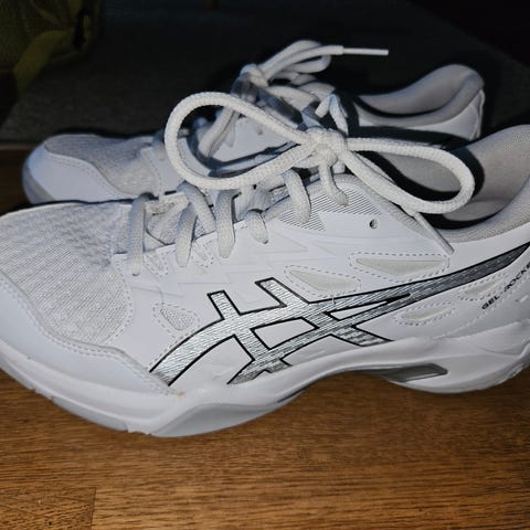 Funktionella inomhusskor från ASICS, modell Netburner Ballistic FF, särskilt framtagna för volleyboll och andra snabba inomhussporter. Skorna är utrustade med FlyteFoam-dämpning för god komfort och stabilitet.
