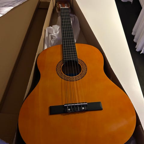 Ariana A-586 akustisk nylonsträngad, klassisk gitarr. Vacker klang, lättspelad. Tillverkad i Japan på 60-70-talet., då de gjorde riktigt bra instrument, speciellt med tanke på priset. Vad jag förstår solida material. Kan jämföras med Yamaha, Aria mfl