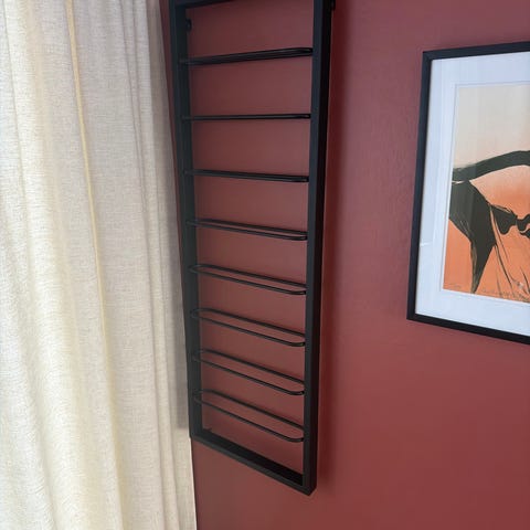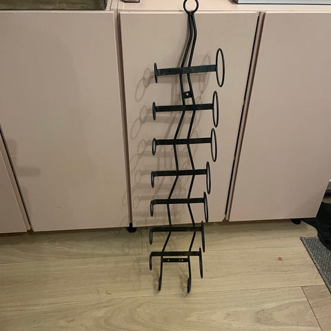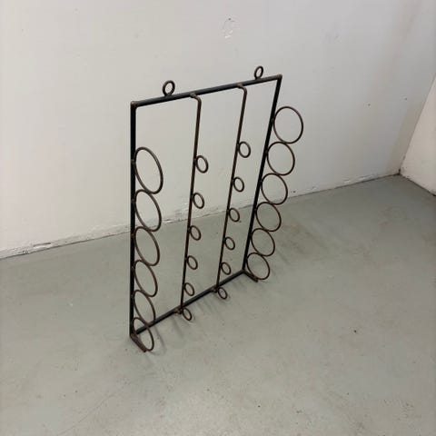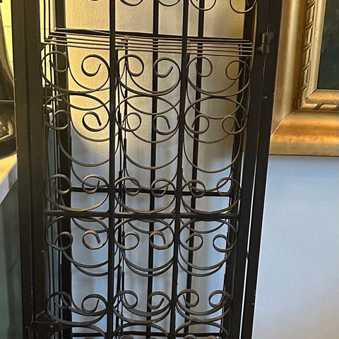 Vinhylla i smide i svart färg. Hyllans design inkluderar ett kupolliknande tak och ett runt underrede med dörr. Mycket dekorativ inredningsdetalj.
