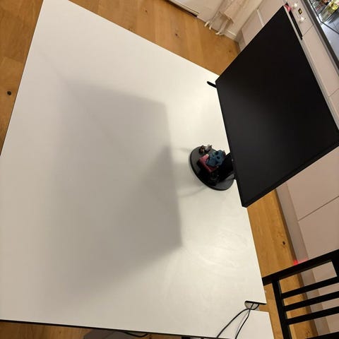 Vit I fint skick elektriskt höj och sänkbar 140cm gånger 80cm finns att hämtas I Sveavägen 155 ,BVSA