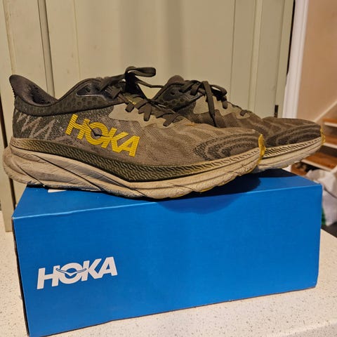 Hoka Bondi 8 träningsskor i storlek 44, färgerna vit och svart. Skorna är väldigt bekväma och passar perfekt i vardagen och för träning. Dom är Sanna till storleken och så är de oanvänd!