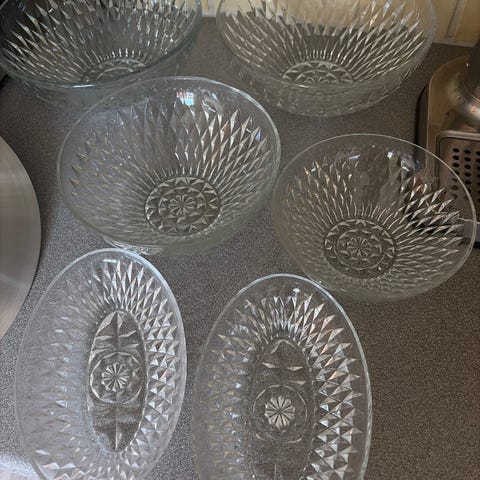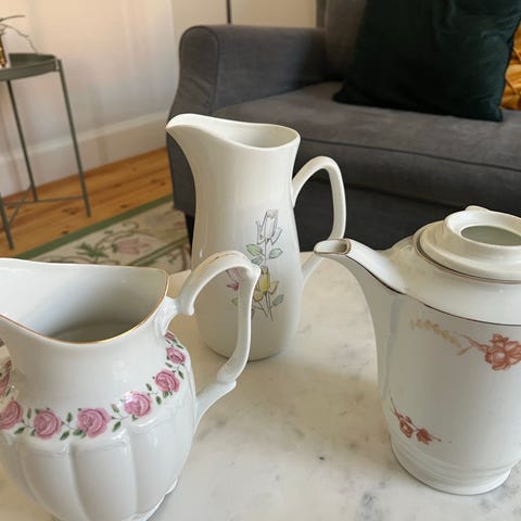 I fint skick vad jag kan se. En av de gröna kopparna har lite nagg. (Se bild)