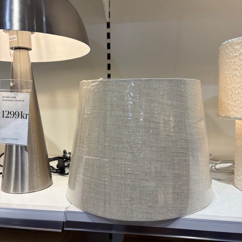 Lampskärm i gul och vit rutig plissé tyg med glödlampa för bordslampa