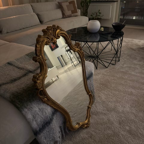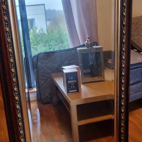 Stor vacker gammal antik spegel med måtten 187x64cm.