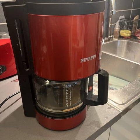 Emerio kaffebryggare i svart färg. Utrustad med glasbehållare och plastdetaljer. Passar för tillagning av kaffe i hushåll.