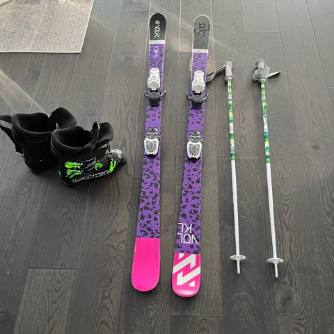 -Dynastar Starlett alpinskidor med längd 140 cm -Rossignol pjäxor i storlek 255 mm innermått, ca stl 40.