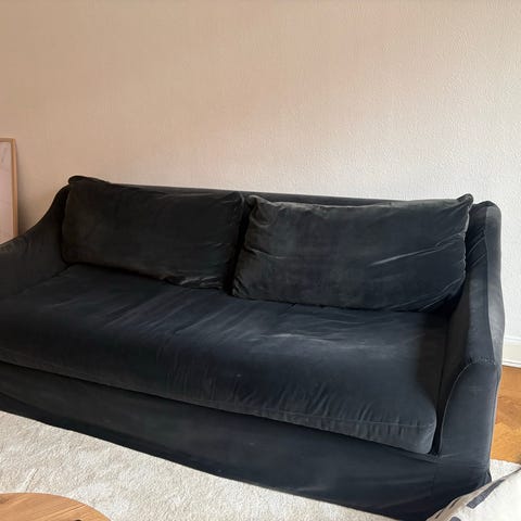 Soffan behöver fraktas med hjälp av t.ex. Tiptapp eller liknande tjänst, och jag som säljare står inte för fraktkostnaden – därmed prislappen!