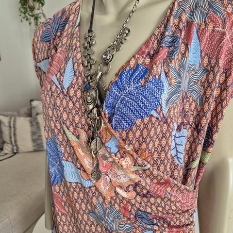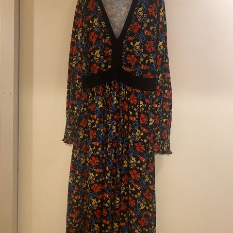 Zadig&Voltaire vardagsklänning i storlek L, tillverkad i viskosmaterial. Klänningen har ett flerfärgat blommönster och är avsedd för kvinnor. Modell med knappar framtill och trekvartsärmar.