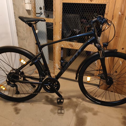 Superfint skick! Lite mindre slitage på pakethållaren där cykelväskorna suttit, se bilder. Bakdäcket är utbytt till ett Schwalbe marathon Plus-däck (punkteringsfritt). Har stått inomhus!
