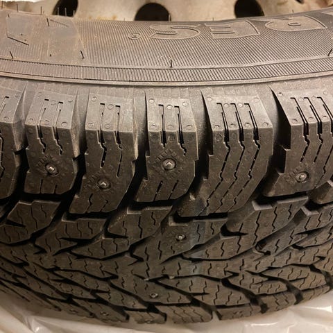 225/75 R16C. Hakkapelitta C4. Plåtfälg. DOT: 4722. Navhål: cirka 71,1 mm. PCD: 5×118 mm. Gänga för hjulbultarna: vanligt M14 × 1,5 (lite tjockare bultar).