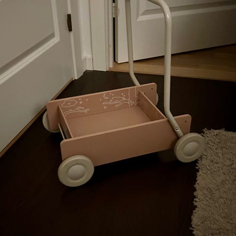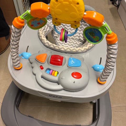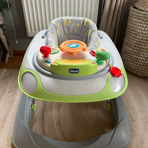 Chicco gåstol i blått. Designad för barn med aktivitetsfunktioner och säker sittplats.