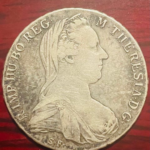 Säljer ett Maria Theresia Thaler, ett historiskt silvermynt som har använts som handelsmynt i stora delar av världen.