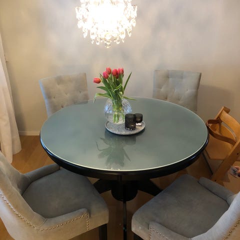 Runt matbord som stod i stugan när vi flyttade in. 115cm i diameter.