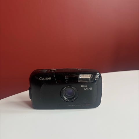 Canon Prima 5 är en kompaktkamera med autofokus och inbyggd blixt. Kameran har en svart design och är lämplig för enklare fotografering i vardagliga situationer.