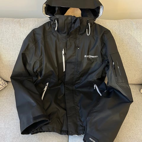Everest täckjacka/skidjacka i storlek M, svart färg. Jackan har huva samt flera dragkedjeförsedda fickor. Djur- och rökfritt hem!