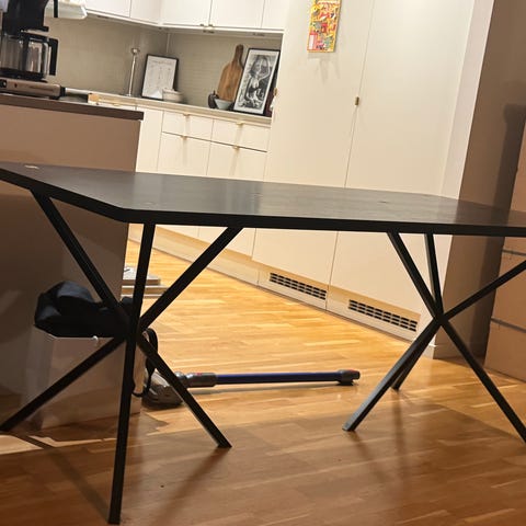Mycket fint bord från NEB i svart laminat och träkant. Svarta metallben.