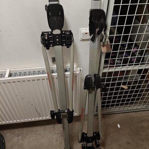 Cykeln kan låsas fast i cykelhållaren som i sin tur kan låsas fast i takräcket (lås med nyckel ingår).