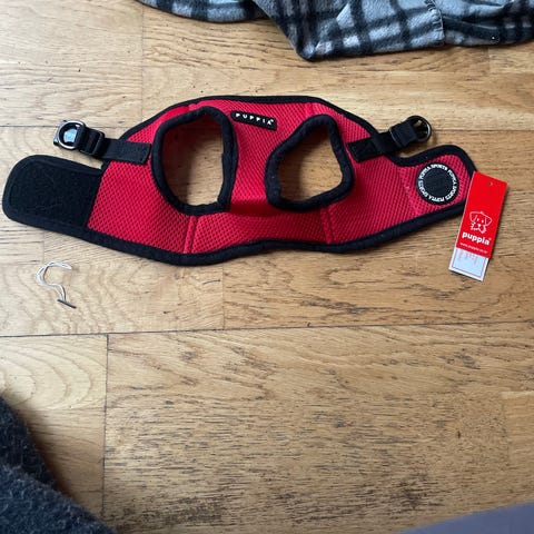 Rosa sele och koppel från märket Feel Active. Synligt använd men annars inga problem.