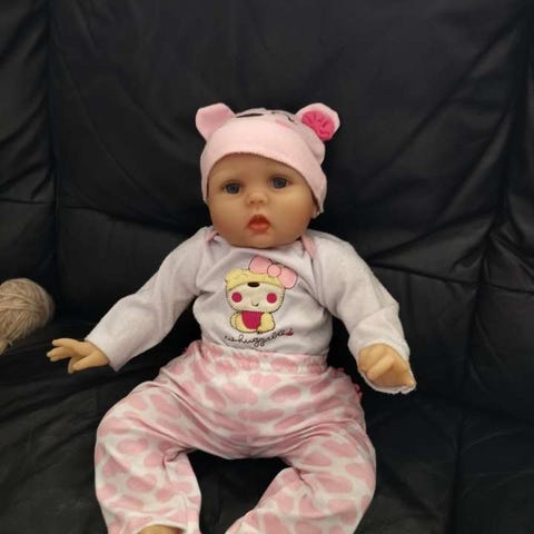Min dotter säljer sin silikonbebis, vagn, skötbord/säng, kläder och allt annat på bilden.