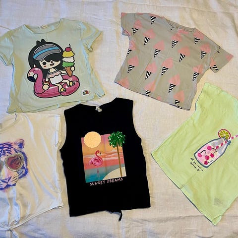 Barnkläder i storlek 122/128. Nyskick. Innehåller olika typer av plagg. Finns att hänta nära farsta centrum. Gärna Kontant betalning