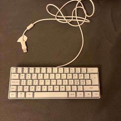 Mekaniskt Tangentbord från Deltaco Gaming, modell med vit färg. Tangentbordet har en minimalistisk design utan numeriskt tangentbord.