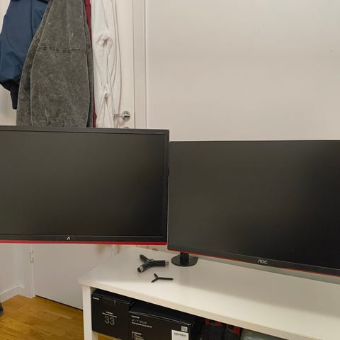 Säljer mina tillbehör till dator, det som ingår är 2 datorskärmar, Geforce trådlöst Headset, Steelseries Kinzu mus, musmatta och Tagentbord.