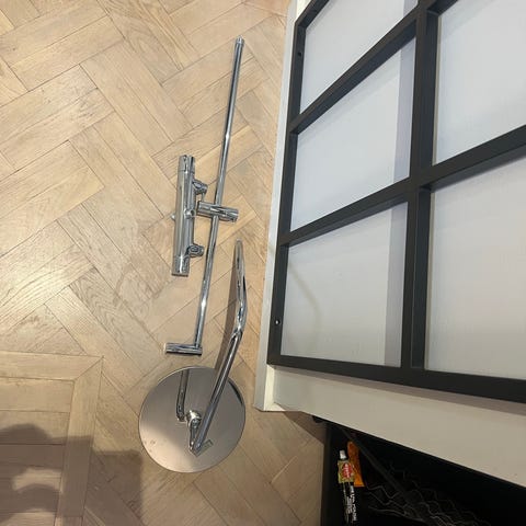 Duschset med handdusch och takdusch, höjd 120 cm. Setet är tillverkat i metall med kromfärgad yta. Passar för installation i badrum med standardanslutningar.