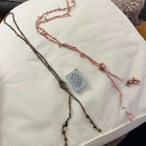 Säljer ett set för 500kr, köptes för 500kr styck för några år sedan. De finns ej kvar i sortimentet. Man kan justera storleken på halsbandet och armbandet hur som helst.