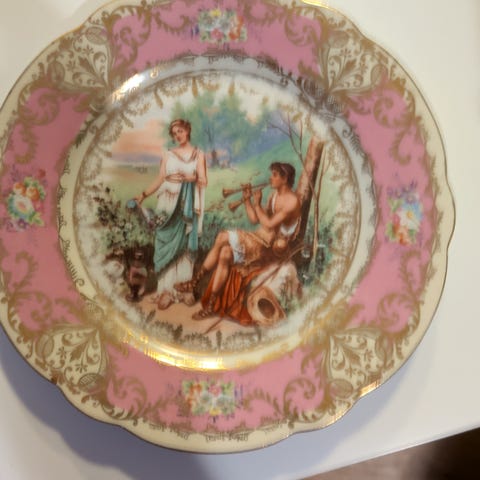 Från hennes kollektion. Alla är köpta i Niagara on the Lake, Canada. Stativen ingår. 8 tallrikar.