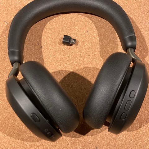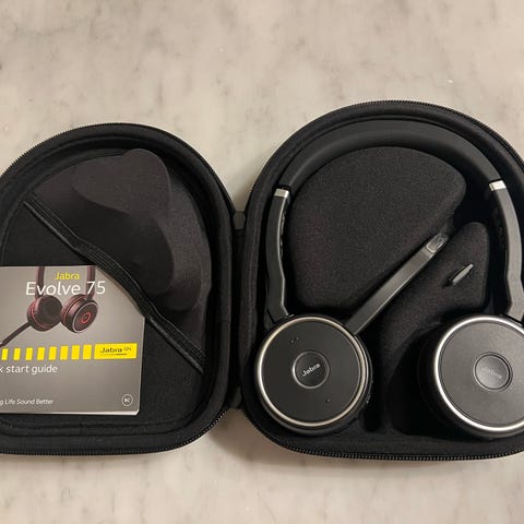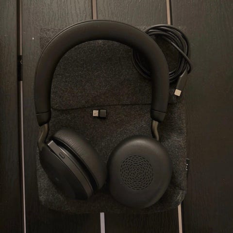 Jabra headset med tillhörande laddningskabel, dockstation och förvaringsväska. Allt i jättefint skick.