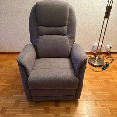 En nätt och lättplacerad reclinerfåtöjl av högsta kvalitet. Extra stoppning och inbyggd svankstöd ger hela ryggen ett härligt stöd. Bekväm tillbakalutning med gungfunktion och inbyggd fotpall. Nackstödet är justerbar och gungfunktionen kan enkelt låsas.