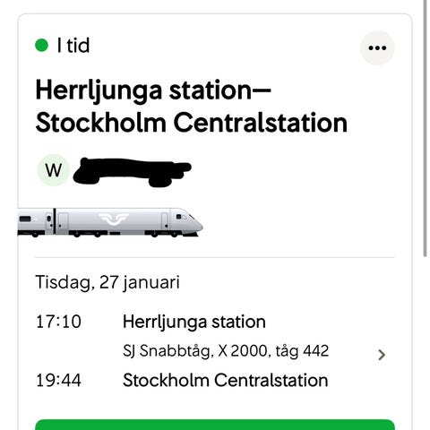 Tågbiljett Stockholm-Karlstad 30 jan kl 18.19.