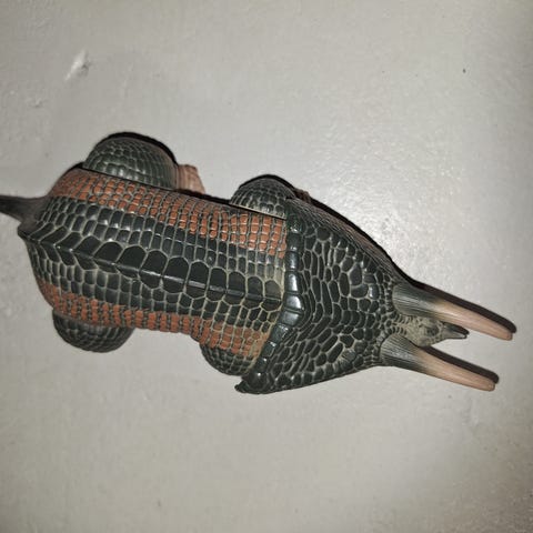 Grön robot dinosaurie som kommer med en kontroll att styra dinosaurien med.