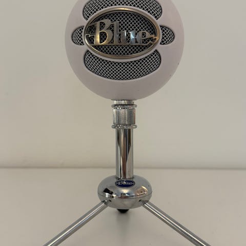 Blue Snowball mikrofon som funkar bra men har en synlig spricka men inte försämrar ljudet