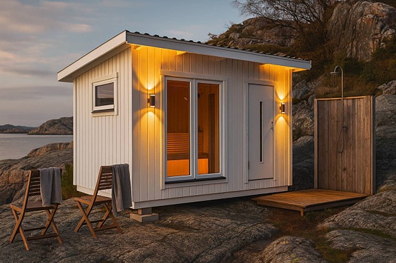 Nyckelfärdig friggebod. INGEN byggsats. Bara ställa på plats och börja använda.