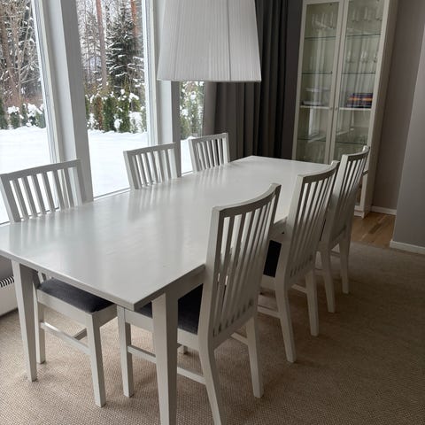 Säljer 8 st IKEA Bernhard matstolar i bra skick. Sköna att sitta på vid härliga middagar med vänner.