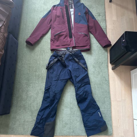 Haglöfs skaljacka och byxor med en vit haglöfs polartec fleece (bungy 2)