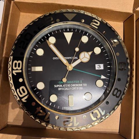 Daytona väggklocka för unisex. Klockan har en svart urtavla med flera mindre urtavlor och en silverfärgad ram. Den är avsedd för väggmontering och har en mekanism för batteridriven gång.