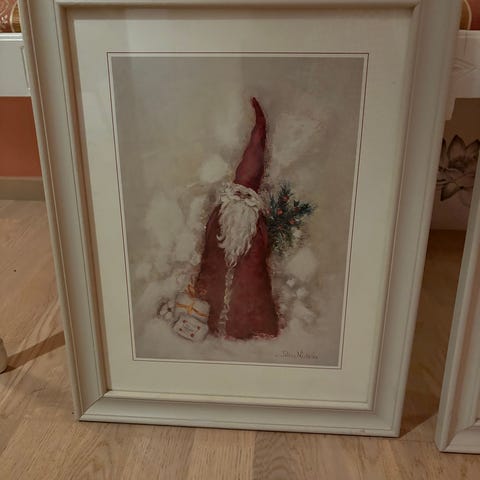 Carl Larsson Julkort Tavla med motivet "Vinter i Spaljé". Tavlan är i färger och visar en vinterinteriör med detaljerade figurer och inredning. Ramen är i trä och tavlan har en avlång form.