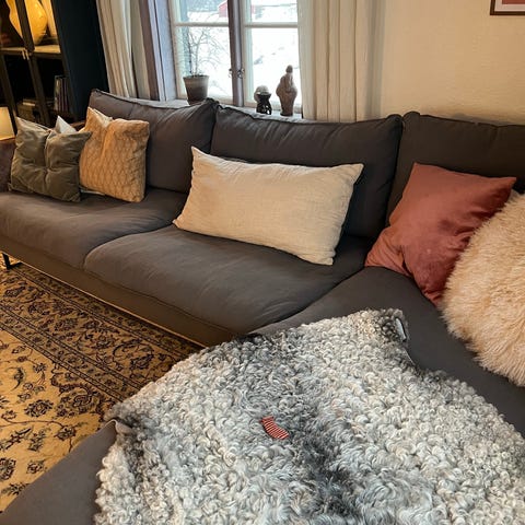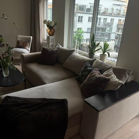 Säljer en Sweef Björnen med divan i grå sammet.
