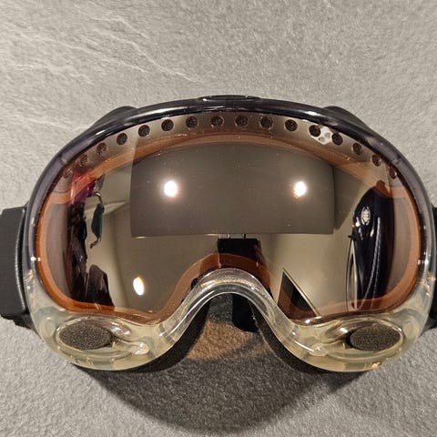 Bekväm passform med 3 lager skum, bra synfält och utmärkt kontrast med Prizm-linsen (rose gold iridium). De ytterst små repor som finns syns endast om man tittar väldigt noggrant under starkare ljus, annars är de som orörda. Aldrig använda av mig.