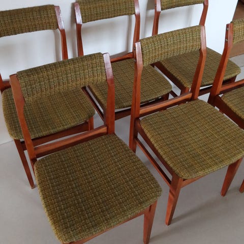 I bruksskick se bilder. Finns småskador men stadiga. Priset är för alla stolarna.